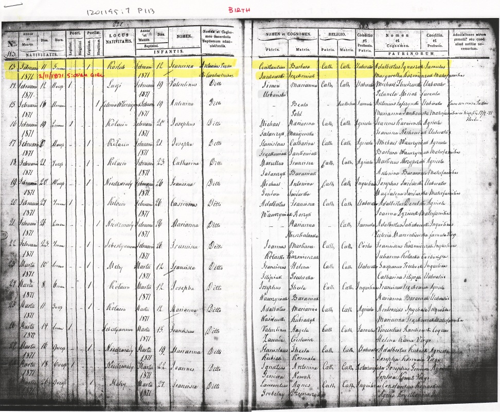 Catholic | Catholic | Laborer | Adalbertus Ignaszak | Servant | |