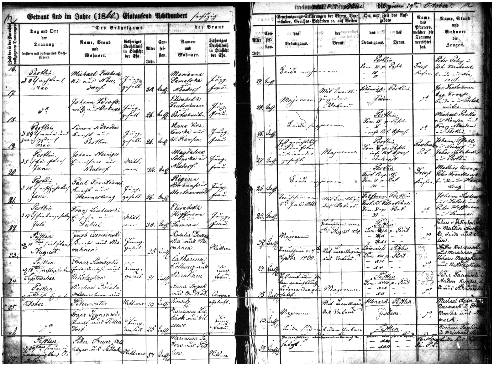 Record: 26th marriage for Pestlin Parish in 1860